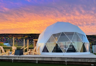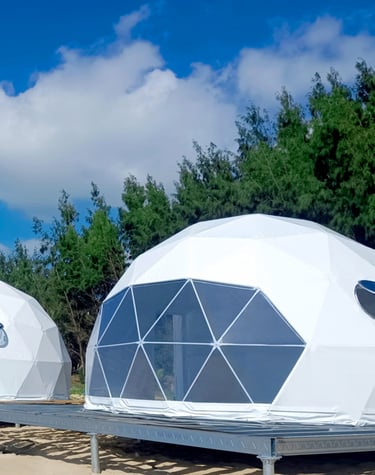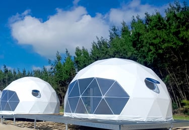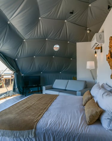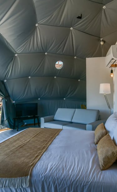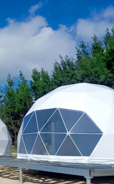 Experience unparalleled luxury and sustainability with our modern geodesic domes and safari camps.