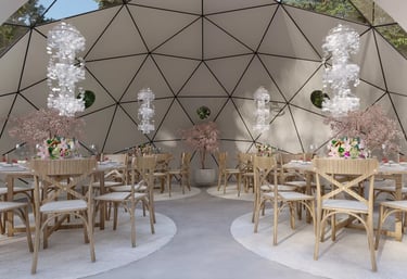 Transform your event with our stunning geodesic domes, offering a unique and unforgettable experience.